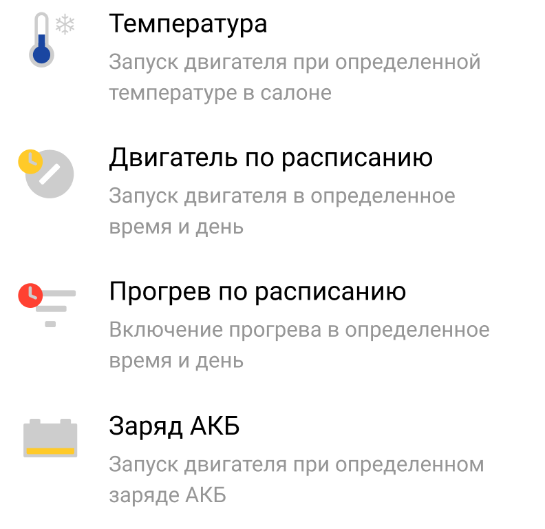 Автоматизация запуска двигателя позволяет задать следующие сценарии: